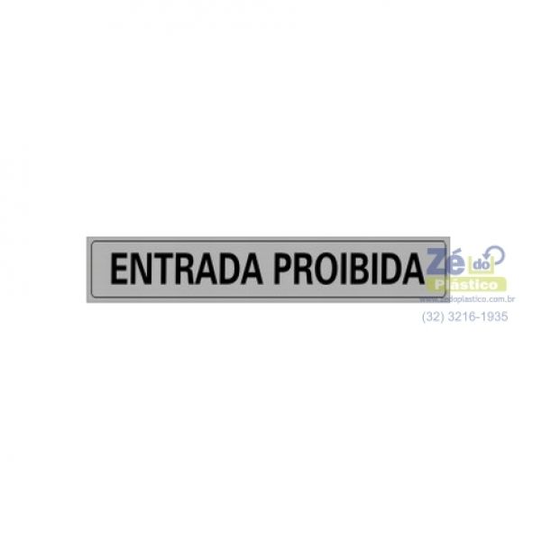 Placa de Sinalização: Entrada Proibida, com fundo prateado e inscrições pretas.