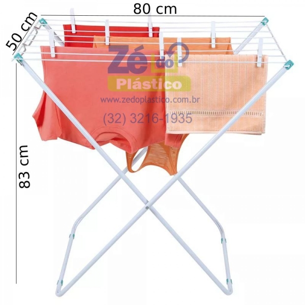 Esse varal é perfeito para quem tem pouco espaço em casa ou apartamentos, pois pode ser carregado facilmente para o local designado e, quando não estiver sendo utilizado, basta dobrar e guardar em qualquer cantinho!